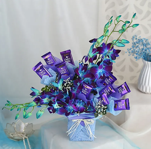 This vibrant Blue Love Orchid is the perfect addition to any home or office space. With its stunning blue flowers, this orchid is sure to add a touch of beauty to your environment. Made with high-quality materials, this orchid is durable and long-lasting. Transform your space with this elegant and eye-catching product.